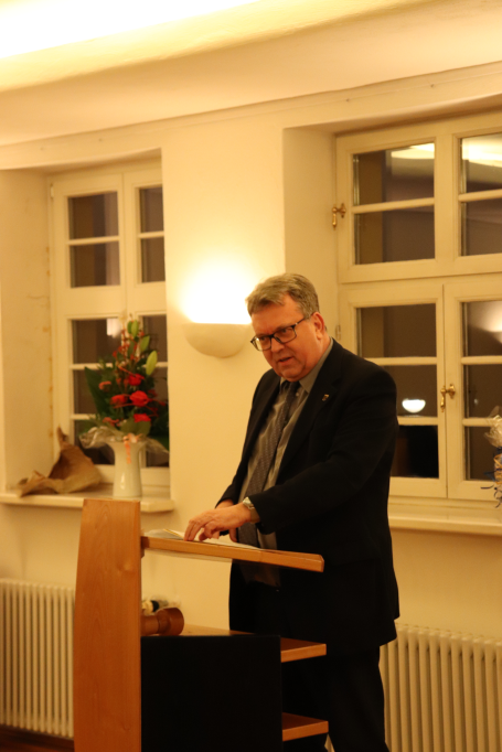 Zu guter Letzt war der Ehrende noch dran um ein paar Worte zu sagen. Zu aller erst bedankte er sich bei seiner Frau und Kindern für den Rückhalt und der Unterstützung und bei seinen Eltern die ihm es vorgelebt haben. Er betonte in seiner Dankesrede das die Ihm zugeteilten Ehrungen, er auch im Namen aller Ehrenamtlichen der FG 08 Mutterstadt e.V. entgegen nimmt, denn ohne die Gemeinschaft wäre Ihm diese Ehre nicht zu teil gewesen.