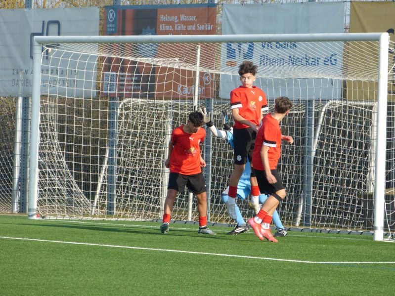 Mutterstadt hatte Anstoß, wurde aber direkt von Herxheim mit aggressivem Pressing unter Druck gesetzt. Die Gastgeber bemühten sich um einen kontrollierten Spielaufbau, doch Unsicherheit und Nervosität waren spürbar. Bereits in den ersten Minuten zeigte Herxheim seine spielerische Klasse. Wenige Stationen reichten, um sich in die gefährlichen Räume zu kombinieren – Mutterstadt wirkte schwerfällig, als hätten die Spieler Blei in den Taschen. In der 4. Minute gab es den ersten gefährlichen Freistoß für Herxheim von der linken Seite. Der Ball segelte knapp über das Tor, ein erstes Warnsignal für die Heimmannschaft. Nur eine Minute später folgte der erste Treffer der Gäste. Mutterstadts Defensive agierte gegen den heranstürmenden Angreifer viel zu zögerlich. Ein einfacher Querpass auf die rechte Seite reichte, und Herxheims Nummer 7 schob mühelos zum 0:1 ein. Die Viktoria blieb am Drücker und demonstrierte ihre körperliche und spielerische Überlegenheit. Mutterstadt bemühte sich, eigene Akzente zu setzen. In der 9. Minute bekamen die Gastgeber einen Freistoß aus halblinker Position zugesprochen. Tim trat an, doch sein Versuch landete ohne Probleme in den Armen des Herxheimer Torwarts. Nach zehn Minuten dann eine schöne Offensivaktion der Nullachter: Pius spielte auf Tim, dieser legte weiter auf Lennard, der von rechts in den Strafraum flankte – aber erneut war der Herxheimer Keeper zur Stelle. Herxheim blieb die dominante Mannschaft. In der 13. Minute hatten sie das 0:2 auf dem Fuß: Der Torwart war bereits geschlagen, doch mit viel Pech vergaben sie den Ausbau der Führung. Mutterstadt hatte Glück, nicht frühzeitig noch weiter ins Hintertreffen zu geraten. In der 25. Minute erarbeitete sich Mutterstadt mehr Spielanteile, ohne jedoch zwingende Chancen herauszuspielen. Herxheim blieb effizient und erhöhte in der 31. Minute auf 0:2. Eine tölpelhafte Abwehraktion endete mit einem Sonntagsschuss, der unhaltbar im Netz landete. Die Partie wurde zunehmend körperbetonter. Hasan musste nach einem harten, aber fairen Zweikampf verletzt vom Platz, wenig später erwischte es auch Leo. Lennard kassierte in der 33. Minute eine Gelbe Karte, nachdem er mehrfach verwarnt worden war. Bis zur Halbzeitpause verlief die Partie ohne größere Höhepunkte. Mutterstadt schaffte es nicht, gefährlich vor das gegnerische Tor zu kommen, während Herxheim das Spiel kontrollierte. So ging es mit einem 0:2 in die Kabine.