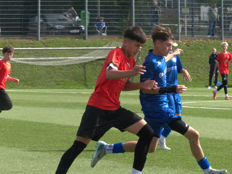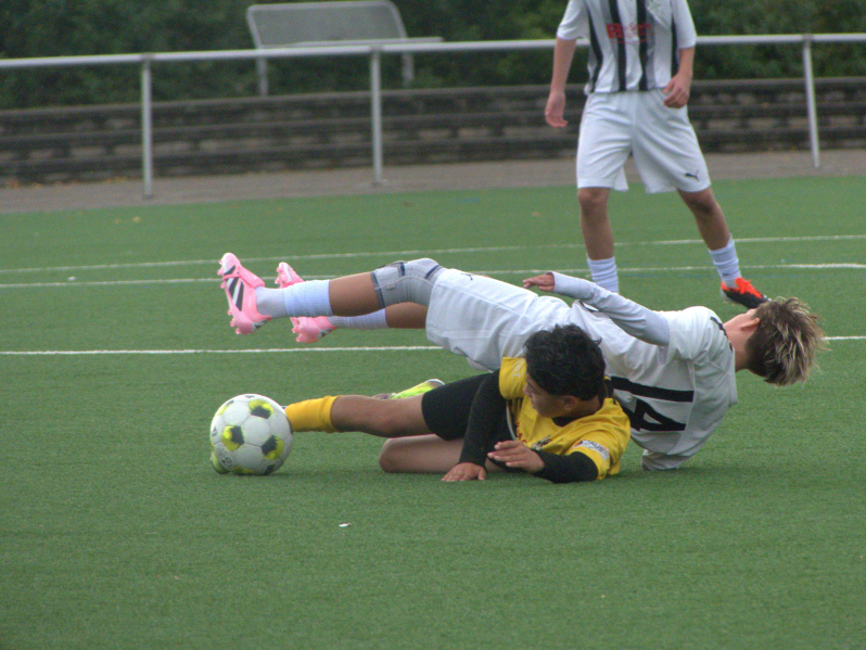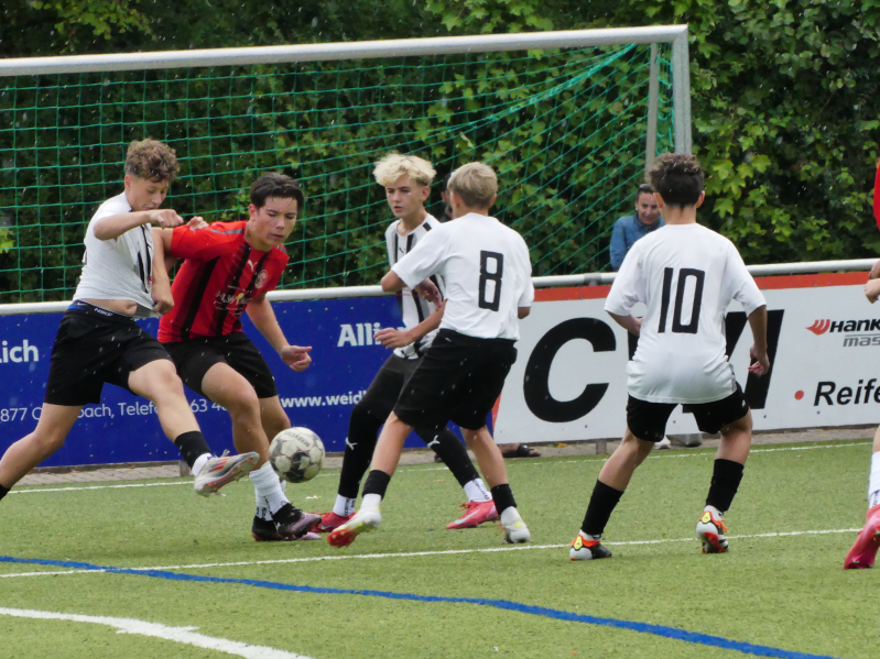 Die Nullachter machten von Beginn an Druck und dominierten das Spiel. So konnten bereits in den ersten Spielminuten einige gute Offensivaktionen herausgearbeitet werden. Es dauerte bis zur 11. Spielminute, bis die Nullachter-Jungs die verdiente 1:0 Führung erzielen konnten. Nach einer sehr gut getretenen Ecke von Niklas, die von Rhein-Haardt nicht geklärt werden konnte, schob Noah, der goldrichtig am langen Pfosten stand, den Ball sicher ins Tor.