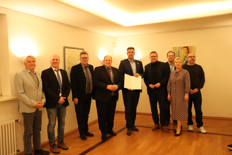 Gestern Abend erhielt Stephen Schulz im Historischen Rathaus die Ehrennadel des Landes Rheinland Pfalz und die Silber Medaille der Gemeinde Mutterstadt für sein außerordentliches ehrenamtliches Engagement. Geladen waren Gäste aus dem Bereich Politik, Sport und Wirtschaft. Auch seine Familie, Eltern und sein Bruder waren gekommen um an der Ehrung teilzunehmen. Zu aller erst begrüßte Bürgermeister Thorsten Lewa die hier Anwesenden. Die Laudatio und die Verleihung übernahm Landrat Clemens Körner mit dem Bundestagsabgeordneten Christian Schreider der unter anderem Vertreter der Vereine im Präsidium beim SWFV ist. Landrat Clemens Körner überreichte Stephen Schulz Ehefrau Tanja einen Blumenstrauß, dafür das sie Ihm immer ihren Ehemann den Rücken freihält wenn es was für die Nullachter zu tun gäbe. Danach erhielt Stephen Schulz von Herrn Bürgermeister Thorsten Lewa die Silber Medaille der Gemeinde Mutterstadt. Als nächster trat Stefan Springer ans Rednerpult und bedankte sich im Namen der FG 08 Mutterstadt für das Engagement von Stephen Schulz bei den Nullachter mit ein paar Anekdoten u.a. aus seiner aktiven Zeit, mit einem Vergleich des vor kurzen verstorbenen Franz Beckenbauer, die aber nicht stand hielt, da die Spielweise des Stephen Schulz doch eine andere war. In allen Reden wurde sein außerordentliches ehrenamtliches Engagement in so jungen Jahren hervorgehoben. Dies sollte ein Anreiz für alle sein sich ehrenamtlich zu engagieren (Anmerkung der Redaktion)