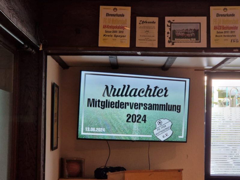 Die Mitgliederversammlung der FG 08 Mutterstadt fand am Donnerstag, den 13.Juni 2024, im Clubraum der Nullachter statt. Der 1. Vorstand Stephen Schulz begrüßte die zahlreich erschienen Mitglieder und bat zu aller erst um eine Schweigeminute für die verstorbenen Mitglieder. Torsten Ottinger trug danach das Protokoll der letzten Mitgliederversammlung vor. Dann übernahm der 1.Vorstand wieder und berichtete über das vergangene Jahr, er bedankte sich bei allen für Ihren Einsatz und Unterstützung bei Ihren Tätigkeiten für die Nullachter. Vor allem der sportliche Erfolg in der Aktivität, Jugend und AH sei Überragend gewesen mit Meisterschaften, Aufstiegen und Pokalsiege.  Der 1.Vorstand lobte die Arbeit vom Beisitzer in der Vorstandschaft Christian Geißler der für die Öffentlichkeitsarbeit und das Sponsoring verantwortlich ist .