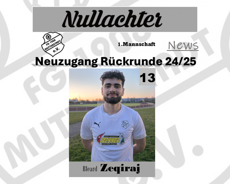Bleard Zeqiraj wechselt bereits zur Rückrunde zur FG 08 Mutterstadt e.V. in die 1.Mannschaft. In der Rückrunde läuft Bleard mit der Rückennummer 13 auf, zur kommenden Saison mit der Nr.9. Wir heißen Bleard herzlich Willkommen und wünschen ihm alles Gute bei den Nullachtern. Wir haben Bleard gebeten sich kurz vorzustellen und ein paar Fragen zu beantworten.