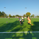 Dementsprechend starteten beide Mannschaften sehr engagiert in die Partie. Mutterstadt verzeichnete den ersten guten Abschluss und konnte sich in der Anfangsviertelstunde zunehmend in der gegnerischen Hälfte festsetzen. Ein Freistoß von Nils war noch etwas zu hoch angesetzt. Kurz darauf wurde es aber erstmals richtig gefährlich. Von Linksaußen zog Nils ins Zentrum, sein abgefälschter Schuss senkte sich gefährlich und ging nur knapp über das Tor. Nach einem Ballverlust im Spielaufbau hatten auf einmal dann die Gäste die große Chance zur Führung. Torhüter Nick zeigte sich aber hellwach und konnte im 1 gegen 1 gegen einen Gästestürmer den Abschluss parieren. Das Spiel gestaltete sich nun offen. Nach einem gut vorgetragenen Angriff der FG 08 wurde Nikola im Sechzehner der Gäste angespielt. Sein scharfer Abschluss klatschte an den linken Pfosten. Die FG 08 hatte aber zunehmend Probleme, Tempo und Tiefe in ihr Spiel zu bekommen. Wenn es gefährlich wurde, dann fast ausschließlich über die linke Angriffsseite. Im Zentrum und auf der rechten Angriffsseite hatte die aufmerksame Gästedefensive meist alles unter Kontrolle. Immer wieder gab es auch Fehler im Spielaufbau der FG 08, die den Gästen in die Karte spielten. Erneut konnte ein gegnerischer Stürmer allein auf Torhüter Nick zu laufen, der auch das zweite 1 gegen 1 Duell für sich entscheiden konnte. Mutterstadt konnte sich auch noch 2 gute Abschlüsse erspielen, aber es ging mit einem torlosen Unentschieden in die Pause.