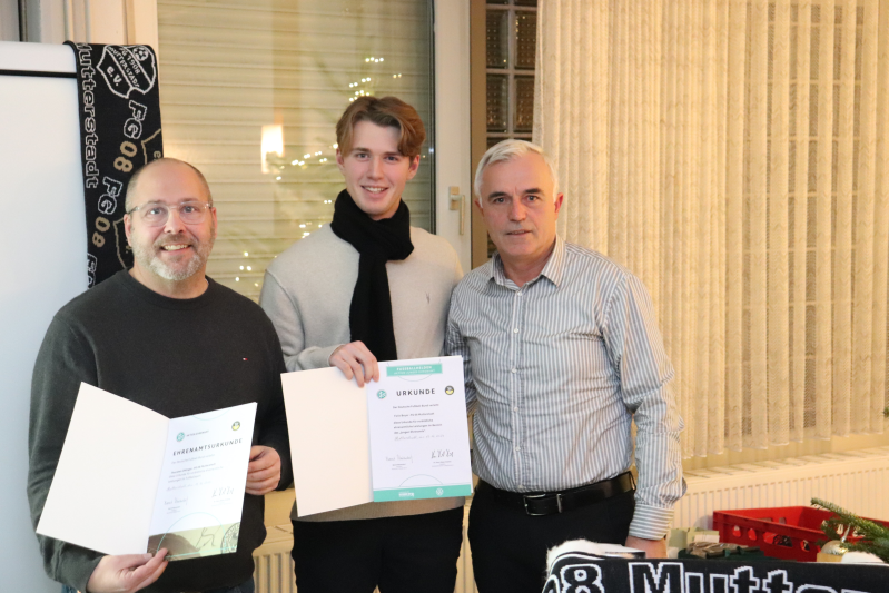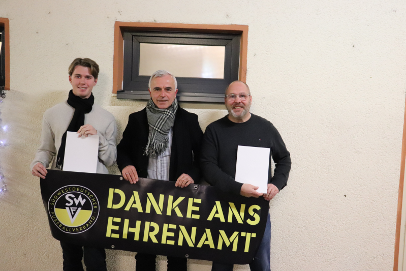 Herr Isufay vom SWFV machte den Anfang. Geehrt wurden Torsten Ottinger (18.09.1974), Bernd Fehr (01.07.1957) und Felix Beyer (28.09.2005) für ihr ehrenamtliches Engagement. Als Präsent erhielten sie die DFB Armbanduhr und eine Urkunde.